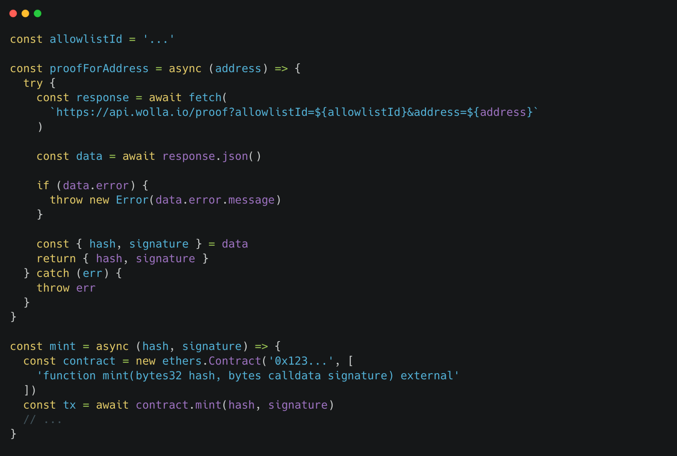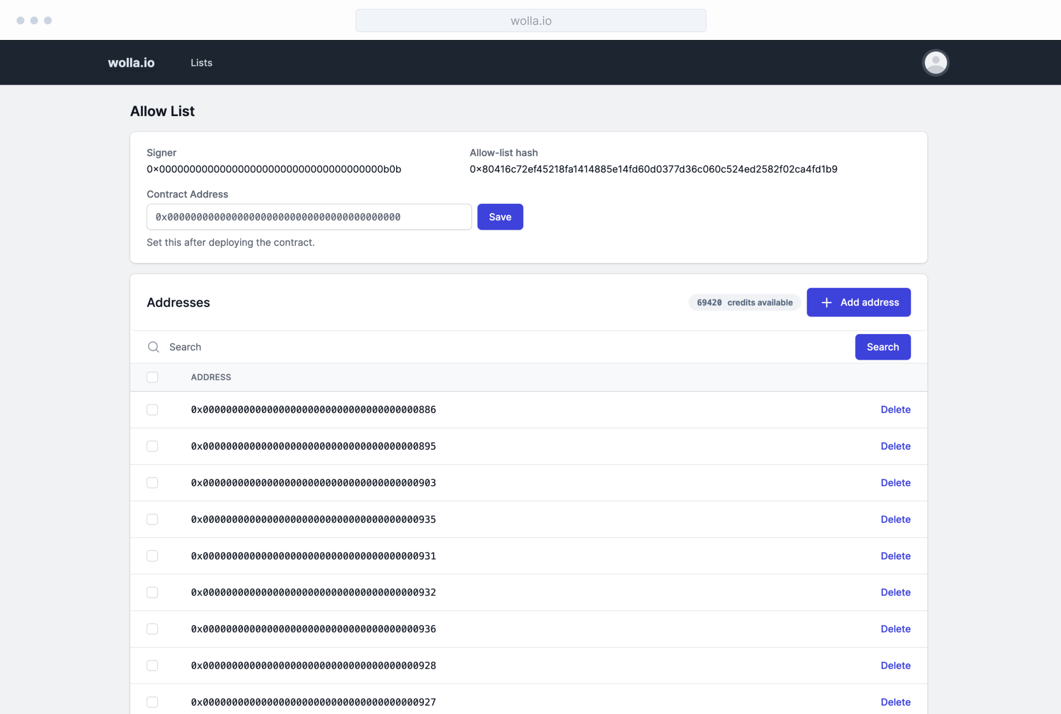 Most alternatives require developers to update the allowlists manually which can be expensive and time consuming. With wolla.io, the developer focuses on the smart contract while anyone else can update the allowlist.